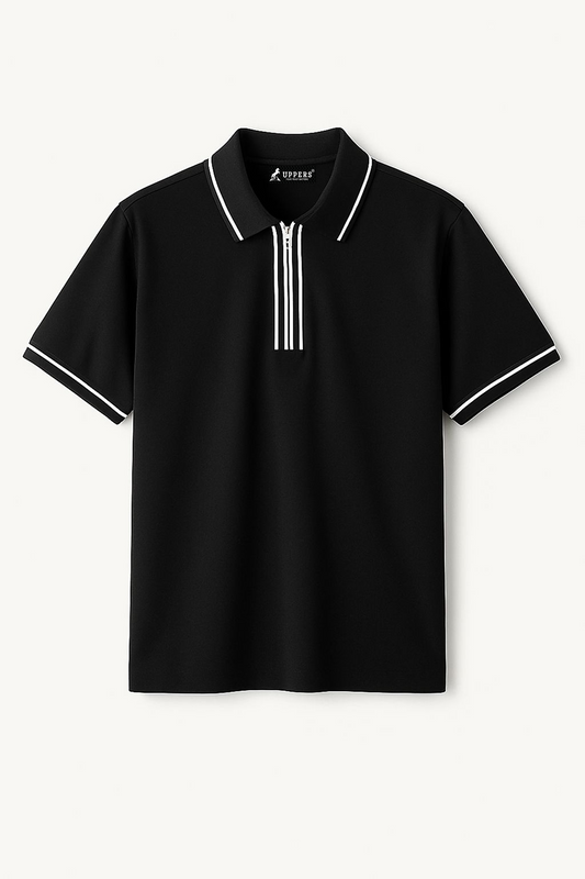 Imported Men's Classic Black Polo T-Shirt with White and Yellow Blue Contrast Tipping – Casual Wear