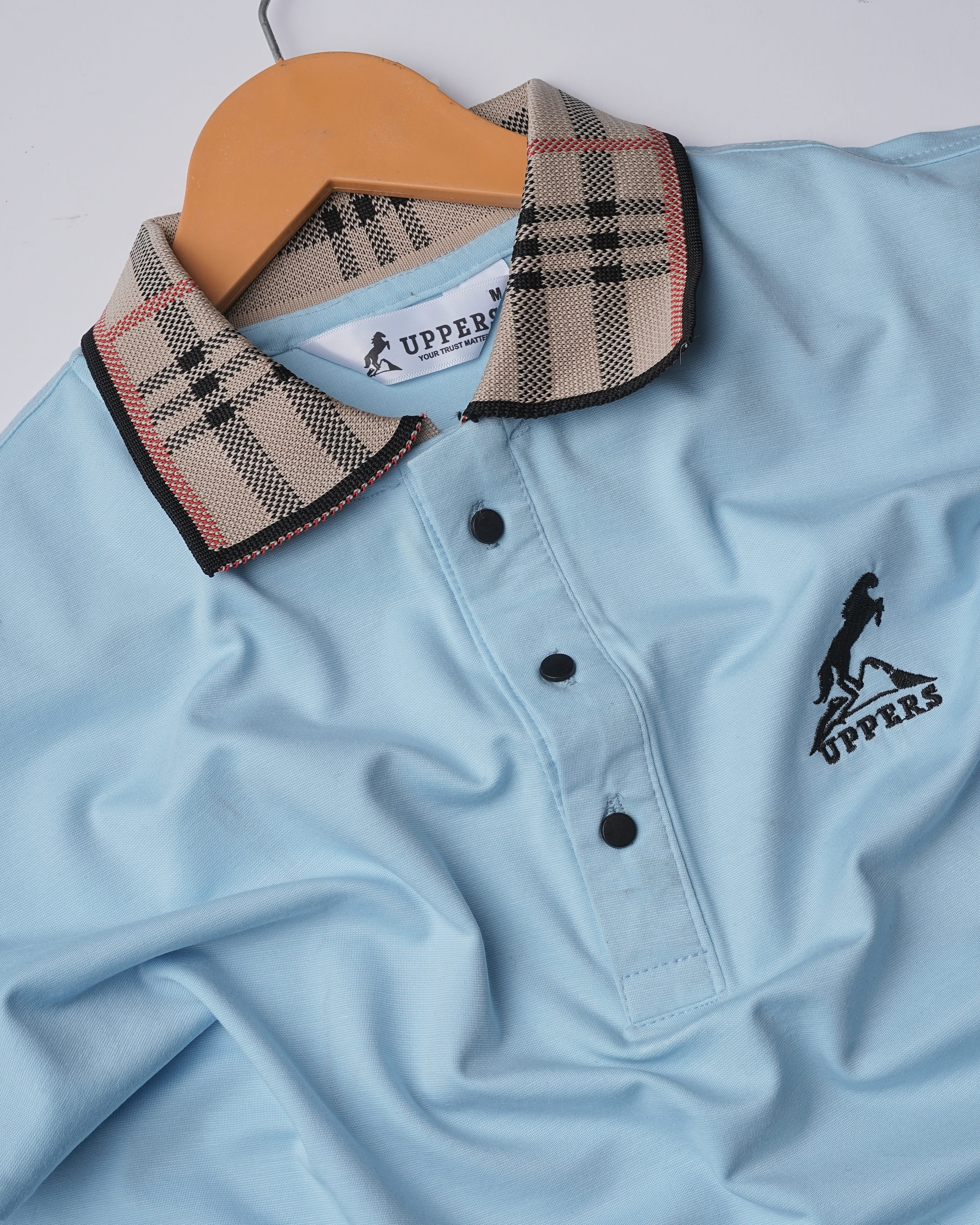 Imported Men's Classic Light Blue Polo T-Shirt with Red and Navy Blue Contrast Tipping – Casual Wear